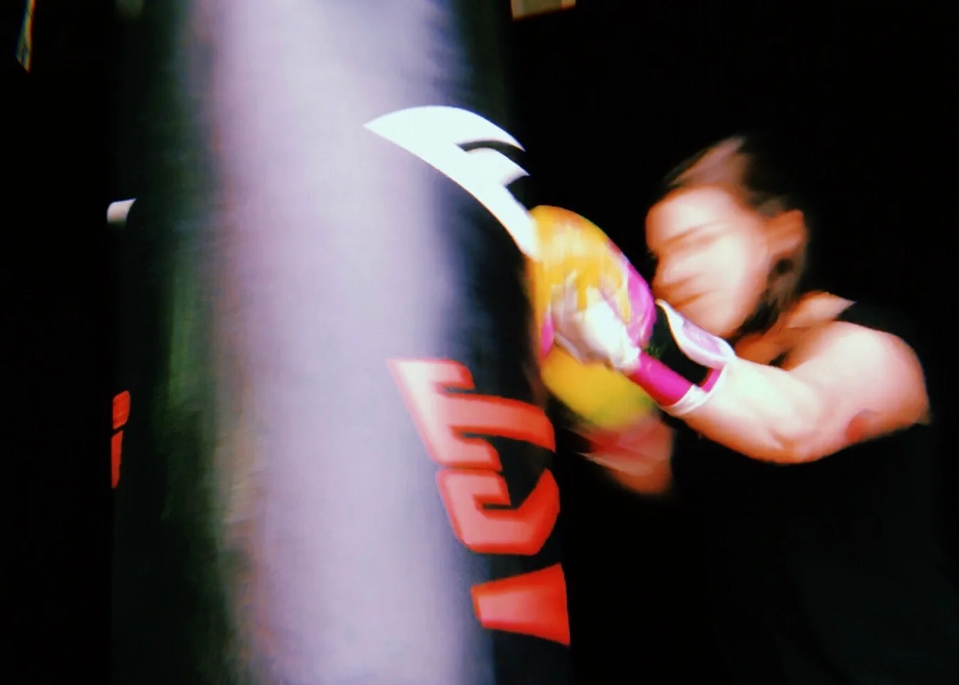 Sweat Sweetie began as a performance identity in April 2019 where Nugent punched a punching bag and read words their sister wrote. The performance turned into a year-long project focused on conflating emotional labor with physical labor. Nugent wrote and designed their Work From Work booklet, co-curated an exhibition of printed instagram posts called Terms of Use, made video work, and constructed quilts and garments made from digitally printed fabric. This series of works culminated in Nugent’s thesis exhibition Sweat Sweetie. Special thanks to Spoonflower.com and School of the Arts at the University of Kansas for their financial support. The following images are by photographer Suzanne Corum-Rich.